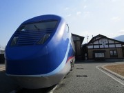 フリーゲージトレイン第2次試験車が展示されています、平成25年(2013年)試験走行を終えたあと西条市に譲渡されました、