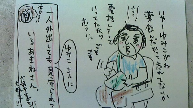 定時に飲まなければならない薬を外へ出ると飲み忘れる店主です。忘れると困るからウチノカミサンにケイタイで知らせてと言っていました。
