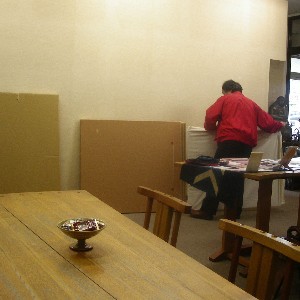 全国的に雨の予報ですね。17日から宇野貴美恵さんの藍染展が始まります。昨日は大きな作品を「アトリエゆら」から運んできました。今日はギャラリーをカラッポにして明日の搬入に備えます。