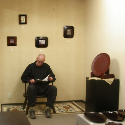 昨日見えられた翻訳業のミラーさんは今日は石鎚山に登っておられるはずです。雨に降られてるんだろうなぁ~と、ちょっと気がかりです。ギャラリー正面の肘掛椅子に座ると何方もキングとクイーンになります。