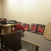 今年一番の冷え込みです。店に出てくるとギャラリーの前に設置しているつくばいの水が凍っていました。午前中はギャラリー内の暖房がなかなか効きません。冷たいです。 寒い寒いと言いながら宮島明展のセッティング中です。