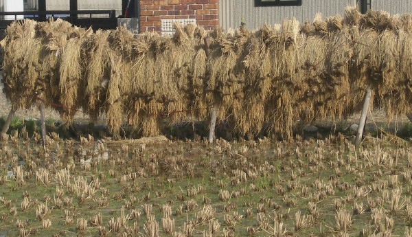 先日来、雀が朝からチュンチュク騒がしくウチノカミサンがちょっと昼間に家へ帰っても槿や椿に雀が何十匹といてチュンチュク鳴いています。すぐ前の田んぼの稲架に干している稲が目当てなのです。椿の木から一斉に稲架を目指してわらわらと飛びおり、また一斉にわぁーと椿に帰っているのを目撃しました。