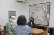 杏子さんの軸装を観に3度目のご来廊のMさん、裂の使い方に感心しきりです、