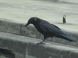 ギャラリーに出てくる途中、道路の何かを啄ばみに降り立ったカラス、大丈夫かなぁ~と思っていたら対向車の来ないのを見計らっていました。