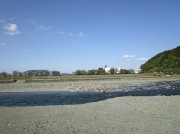 武丈の河川敷からメロディ橋を渡ります。