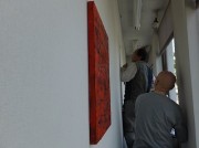 桜の花蕊が落ちるようになりました。 明日から天気が崩れそうなので今日、矢原作品の搬入をします。 午前中はこんな雲がでていましたが午後にはすっきりした青空になりました。 石鎚山の谷筋には雪が残り、燕が飛び交い穏やかな春の日です。 作品の配分がてらウィンドは掛けていきます。 ギャラリー内は明日に。 店主は愛媛県美術館の「熊谷守一展」の会展式に出てきます。