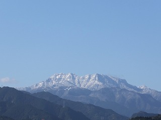 雲が取れて久振りの青空です。石鎚山もこれも久し振りに白くなりました。雪ではなく霧氷のようですね。