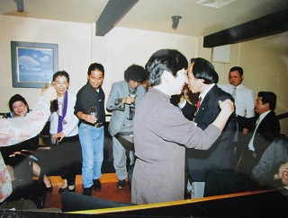 1枚目、西条市役所へ表敬訪問、2枚目、庄助さんところでの池田満寿夫氏と、3枚目、セカンドチャンスでの親睦会、