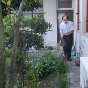 ウチノカミサンが花を生け替えているあいだに店主はギャラリー前の掃除です。