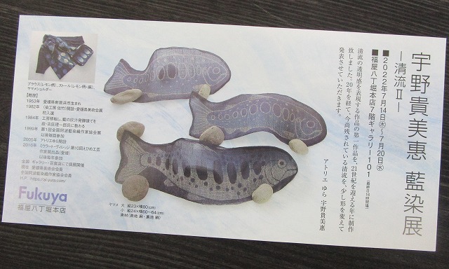 広島の「福屋八丁堀本店」7階ギャラリー101では「宇野貴美恵 藍染展ー清流Ⅱー」開催中、