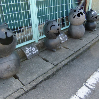 島内で見かけるネコたちは漁に使う「浮き」で出来ています。島の人たちが、遣わなくなったブイを利用して島の名物になっているそうです。