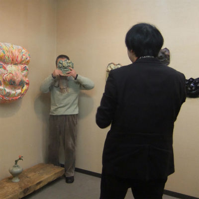朝の晴天はどこへいったのか、明日は雨の予報が出ています。最後に鬼面が出て今回の展覧会は終わります。