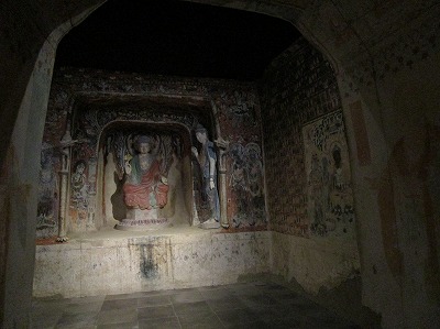 ポスター、フライヤーにも遣われている「法隆寺釈迦三尊像」の部屋、