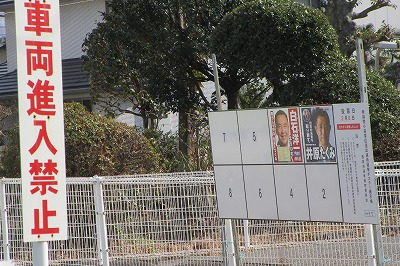 ギャラリー前の選挙ポスター掲示板、運動員が多い候補者は早く貼っているようです、