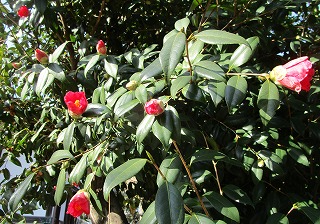 西條神社のメジロがよく来る赤い椿、