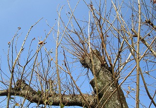 すっかり葉を落とした桜、