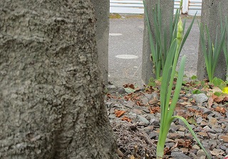 塀を直したときに無くなっていた水仙もちゃんと花芽を付けていた、