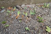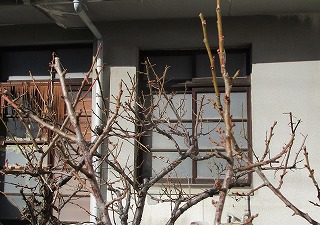 奥のユスラウメや牡丹には赤い冬芽、ヒオウギも芽が出てきた、