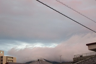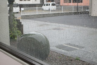 一晩中雨音がして、 ギャラリーへ出てきてもしっかり雨が降る、 「石鎚さん」展始まりました! いち早く届いたのはフランス在住の日浅和美さん、 雨の中を早く来られたギャラリー、 雨の中を久万高原町から零駒さんたち、 松山のTさんからは「石鎚さん」展の資生堂のお菓子、 名古屋のお土産に頂いたのは中山道の「すや」の栗きんとん、 雨は止んだが午後5時半ころの雲、 何だか怪しげ、明日も荒れ模様、