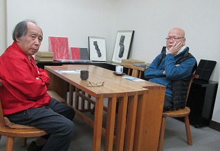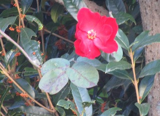 隅から隅まで晴天! 山茶花の初咲、 ギャラリーから観ても雲一つない晴天、 アーケード街のポストまでの途中、 ウチノカミサンの好きな一重のバラの残花、 午前中に見えたMMさんが手伝ってくれて荷造りし送り出す、 帰っていくMMさんを見送り、 矢原さんが作品を持って見え、 ああだこうだと二人で話す、