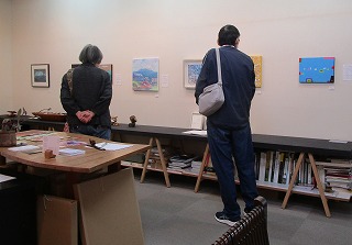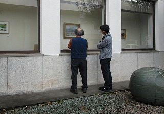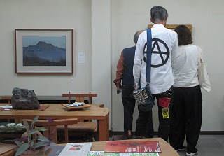 越智節昇さんのお供をしてご一緒に絵を描かれていた伊藤文夫さんが来られ、じっと正面に掛けてある越智先生の石鎚を観ておられました、
