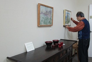 昨日、風雅さんに額装分を渡したので今日は吊り替えます、
