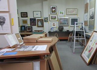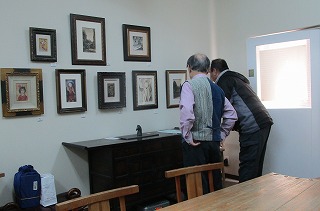 初めて安藤義茂作品を観られる方に店主は解説をして、