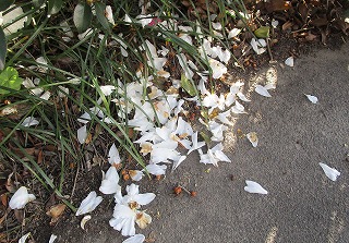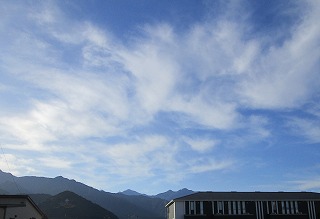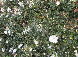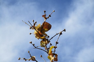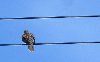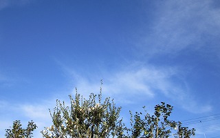 ロウバイの空も、山茶花の空も、キジバトの空も青い、