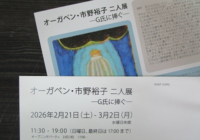 明日から銀座の枝香庵さんところで「オーガベン・市野裕子 二人展 ーG氏に捧ぐー」がはじまります、