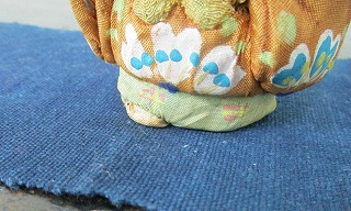 寒いこの時期に出す子守人形、以前にも紹介しましたが店主の母親からのものです、傍らに犬も居たのが犬は行方不明に、店主の元に来た時にはありませんでした、ウチノカミサンは見ていません、が、座布団を二つ折りにして背負い遊んでいる女児が可愛い、ちょこっと覗いている右足も可愛い、