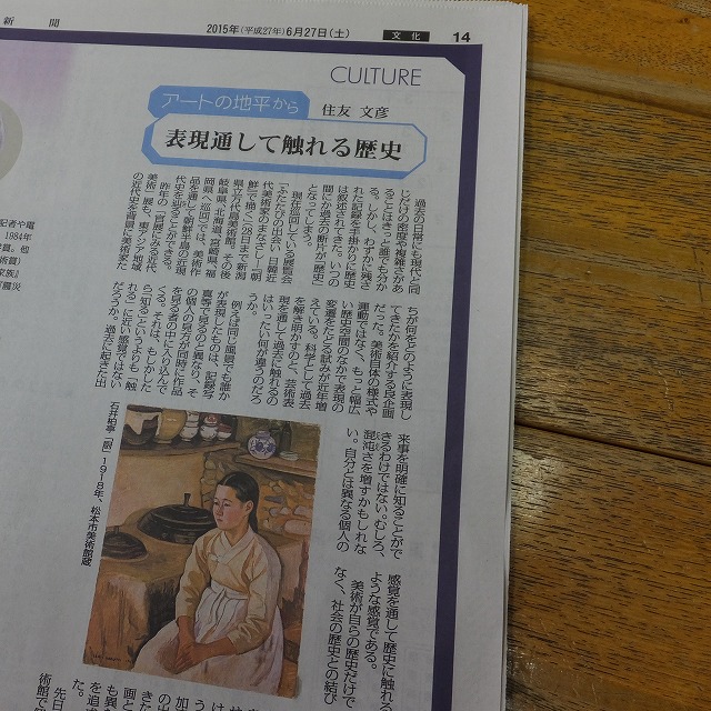 ギャラリーを開けて毎日新聞を読んでいると現在巡回中の「日韓近代美術家のまなざし」展に触れているコラムがありました。