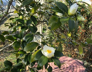 白い花の「玉の光り」「アマネ椿」春咲クリスマスローズ、