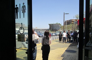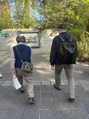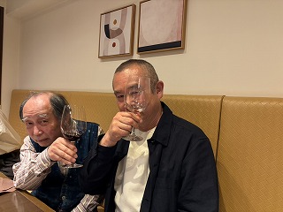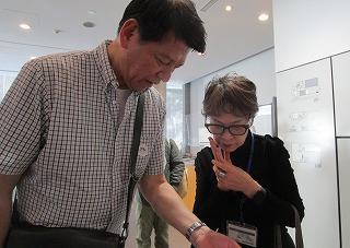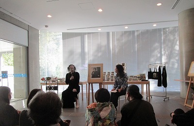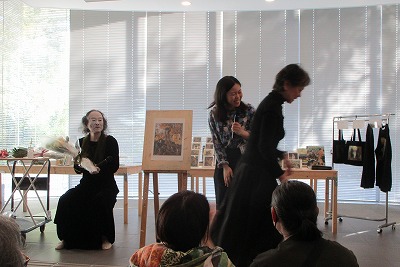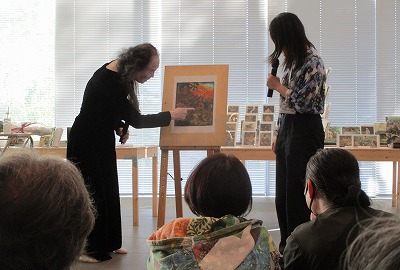 天狼星の大森政秀氏の舞踏の後、エントレンスホールで学芸員の小澤由季氏が大森氏に尋ねています、