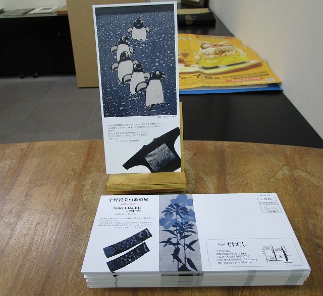 東京へ出る前に「宇野貴美恵藍染展」のDMに宛名貼りを済ませていたので今日郵便局へ、