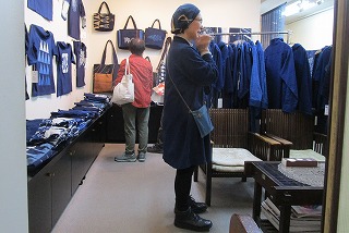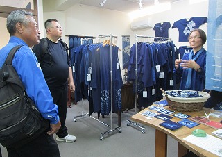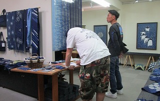日本の伝統ものが大好きな若者、貴美恵さんの藍染の話をじっくり聴いていた、