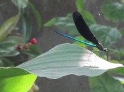 今日で3日になるオハグロトンボ、木陰でゆらゆら気ままに過ごしています。オニヤンマ、シオカラトンボ、アカトンボと訪れてくれますが、ホバリングはしてもなかなか止まってくれない彼らと違ってハグロトンボはよく撮れます。