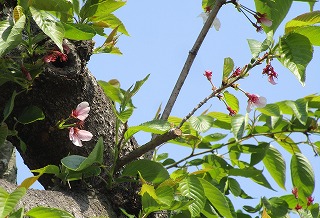 カラスの鳴き声は大きい、 八重椿の初花、クチナシの実、水仙に朝陽、 朝陽に当たって桜紅葉がきれい!その葉っぱ近くにはモンシロドクガ?の毛虫が、 ギャラリー入り口のスポット電球が切れていたので替える、 図録を見ながら人待ち顔で、 午後、矢原さんが見える、 K夫妻、文化会館帰りの岸田さんファミリー、