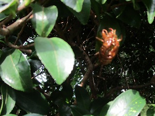 キジバトさんの樫の木は夏落ち葉、大家さんが挿し木をしてくださったアマネツバキは元気に新芽も出てきたのに葉を落としている…、困ったなぁ、