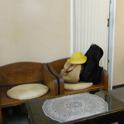 ギャラリーへ出てきたとき大家さんの家の横に設置している反射板が壊れているのに気が付きました。道路にその反射板の黄色の破片が飛び散っています。大家さん所は日曜日が定休日なのですが声を掛けました。昨夜大きな音がしたけれど酔っ払いがシャッターでも蹴ったのかと思っていたそうです。一応警察に知らせ検分していただきました。脚で蹴ったのかもしれないとのこと。そうかな~?